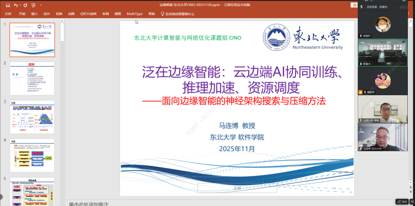 教授、博导,辽宁省智能科学与智能系统重点实验室副主任,沈阳市边缘计算技术创新中心学科带头人马连博教授,带来主题为“面向边缘智能的神经架构搜索与压缩方法研究”的精彩学术报告。